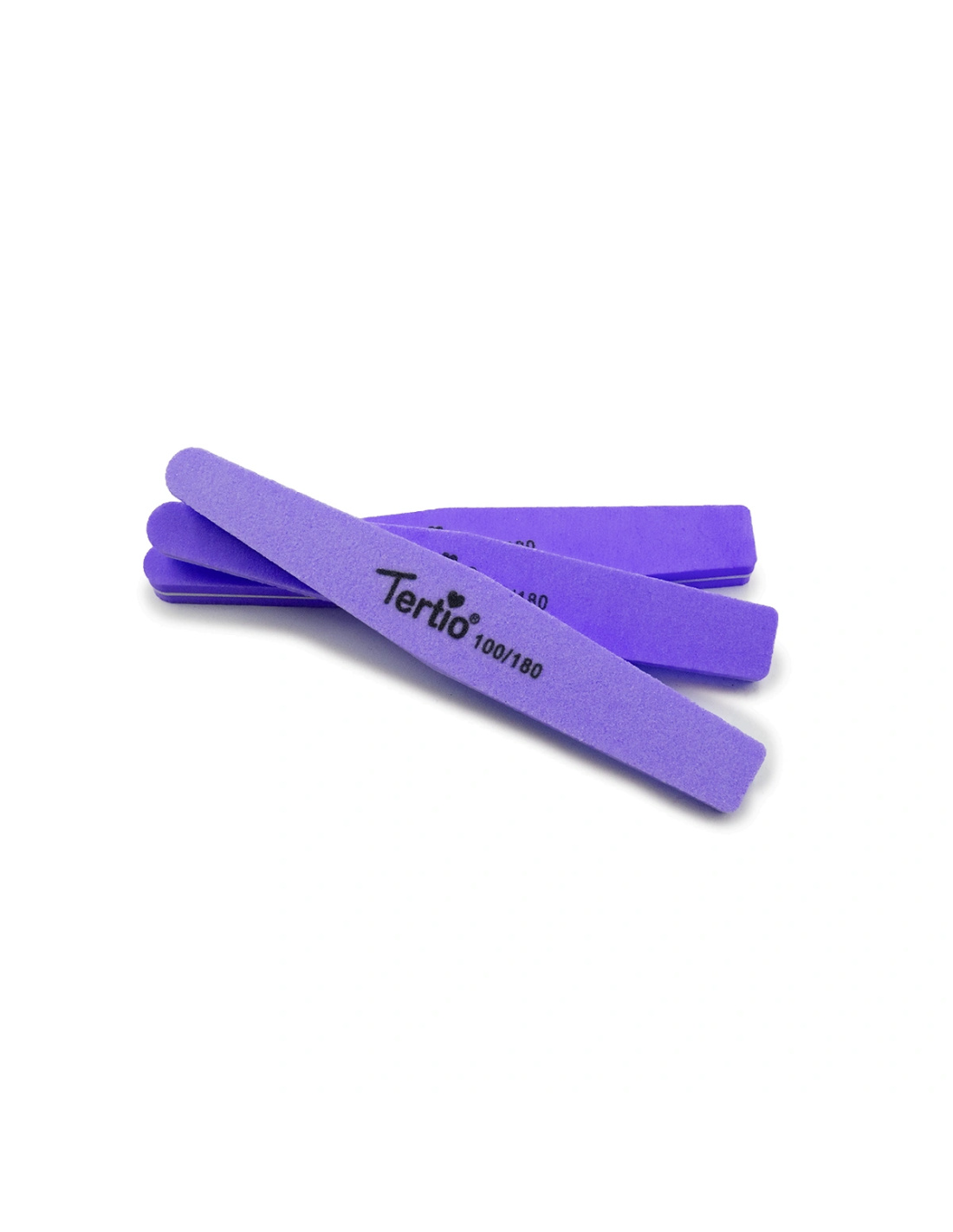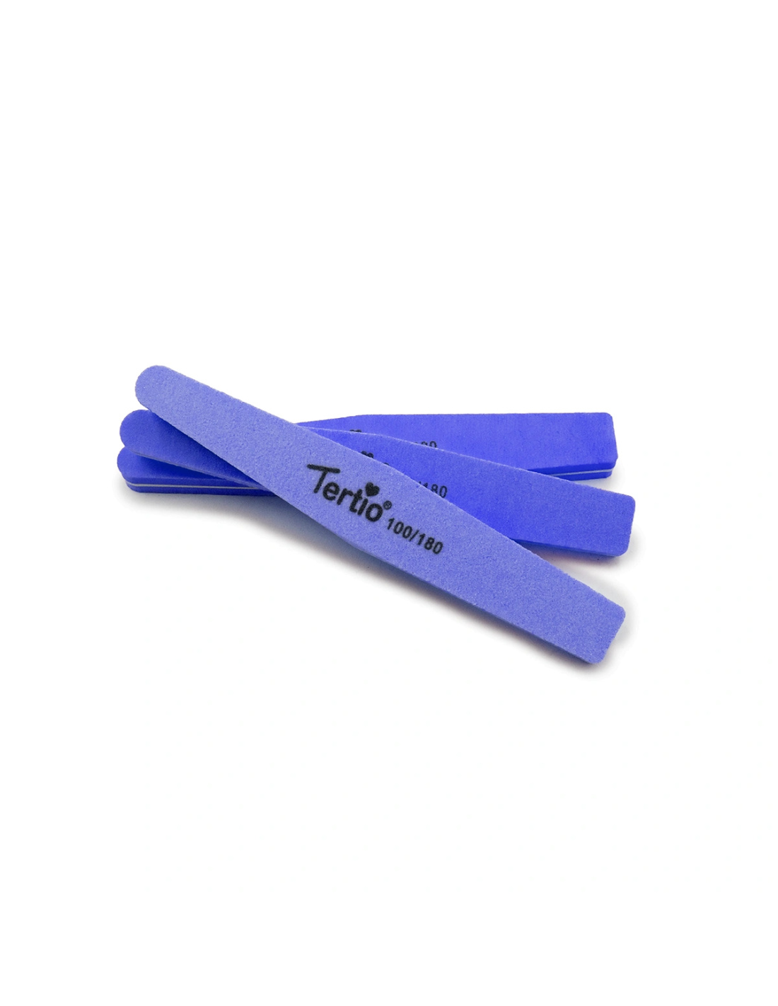 ¡Consigue un acabado perfecto en cada manicura con las limas profesionales Tertio! Este set incluye 3 limas de doble cara con granos 100/180, ideales para dar forma, alisar y preparar las uñas naturales o acrílicas.