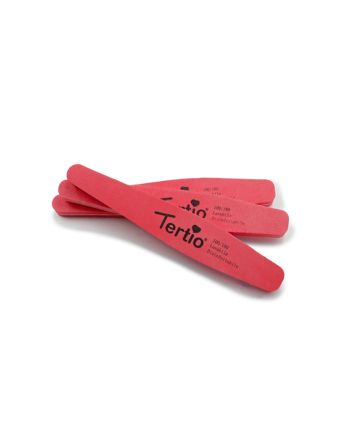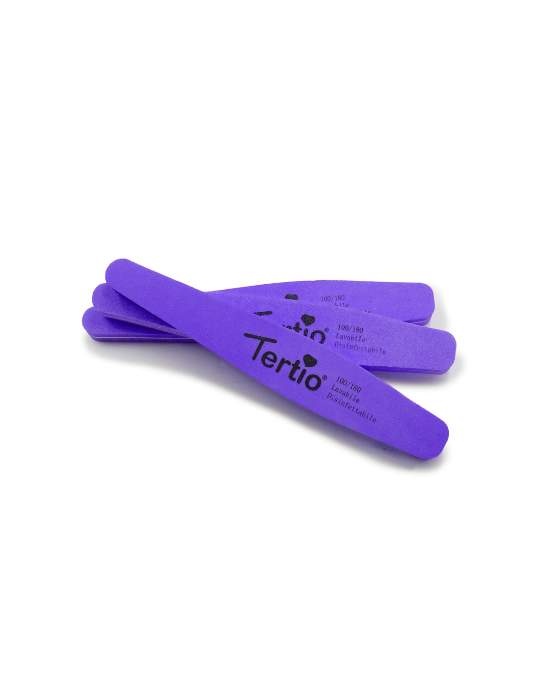¡Consigue un acabado perfecto en cada manicura con las limas profesionales Tertio! Este set incluye 3 limas de doble cara con granos 100/180, ideales para dar forma, alisar y preparar las uñas naturales o acrílicas.
