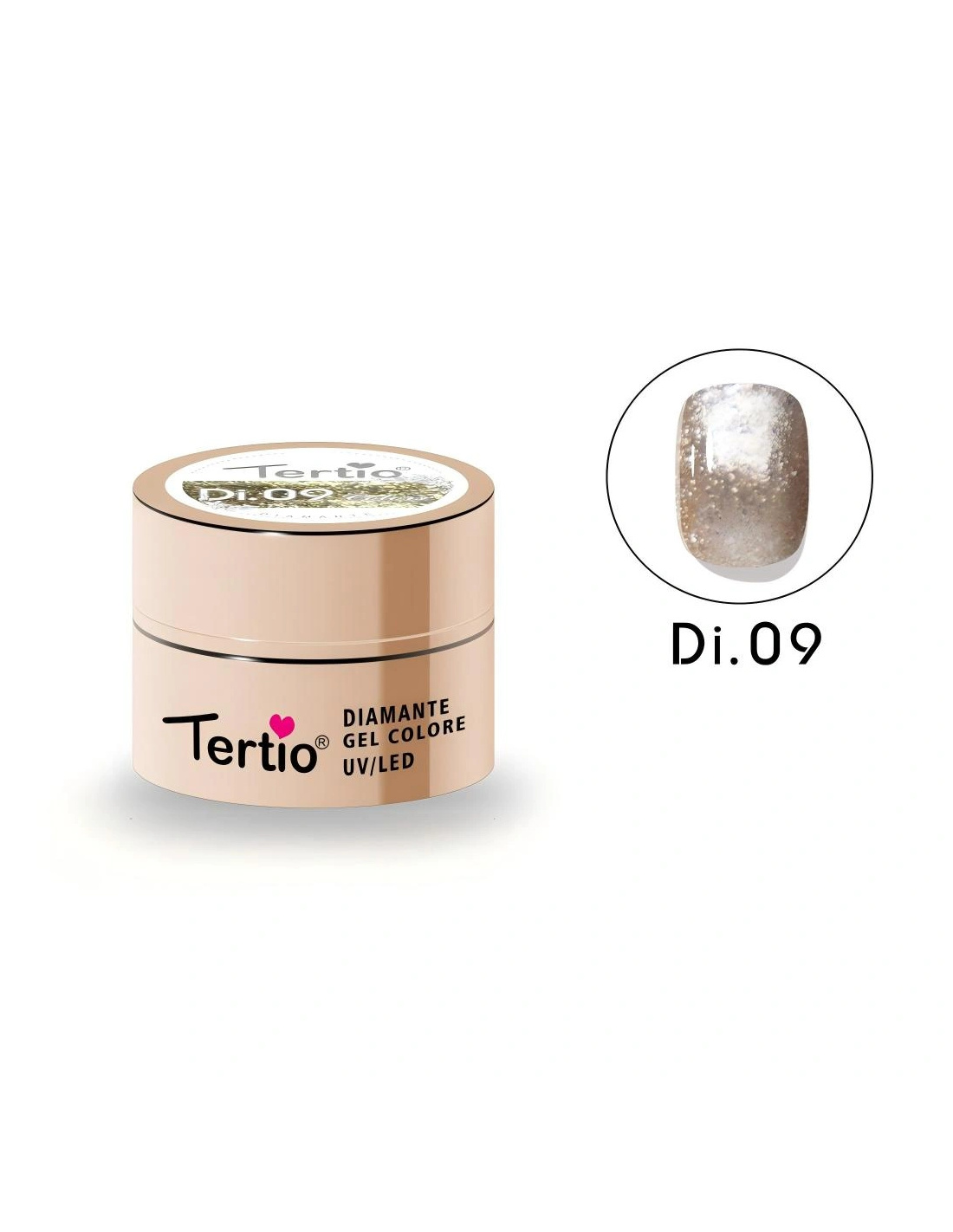 El Tertio Diamante Gel es un gel de color profesional diseñado para crear un acabado brillante tipo diamante, con partículas reflectantes que aportan un efecto luminoso y elegante en cada aplicación.