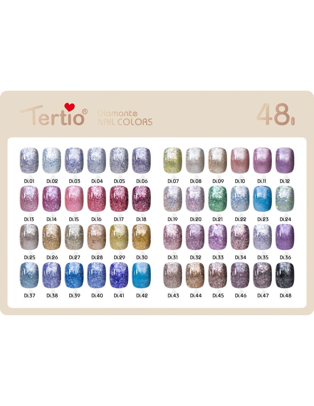 El Tertio Diamante Gel es un gel de color profesional diseñado para crear un acabado brillante tipo diamante, con partículas reflectantes que aportan un efecto luminoso y elegante en cada aplicación.