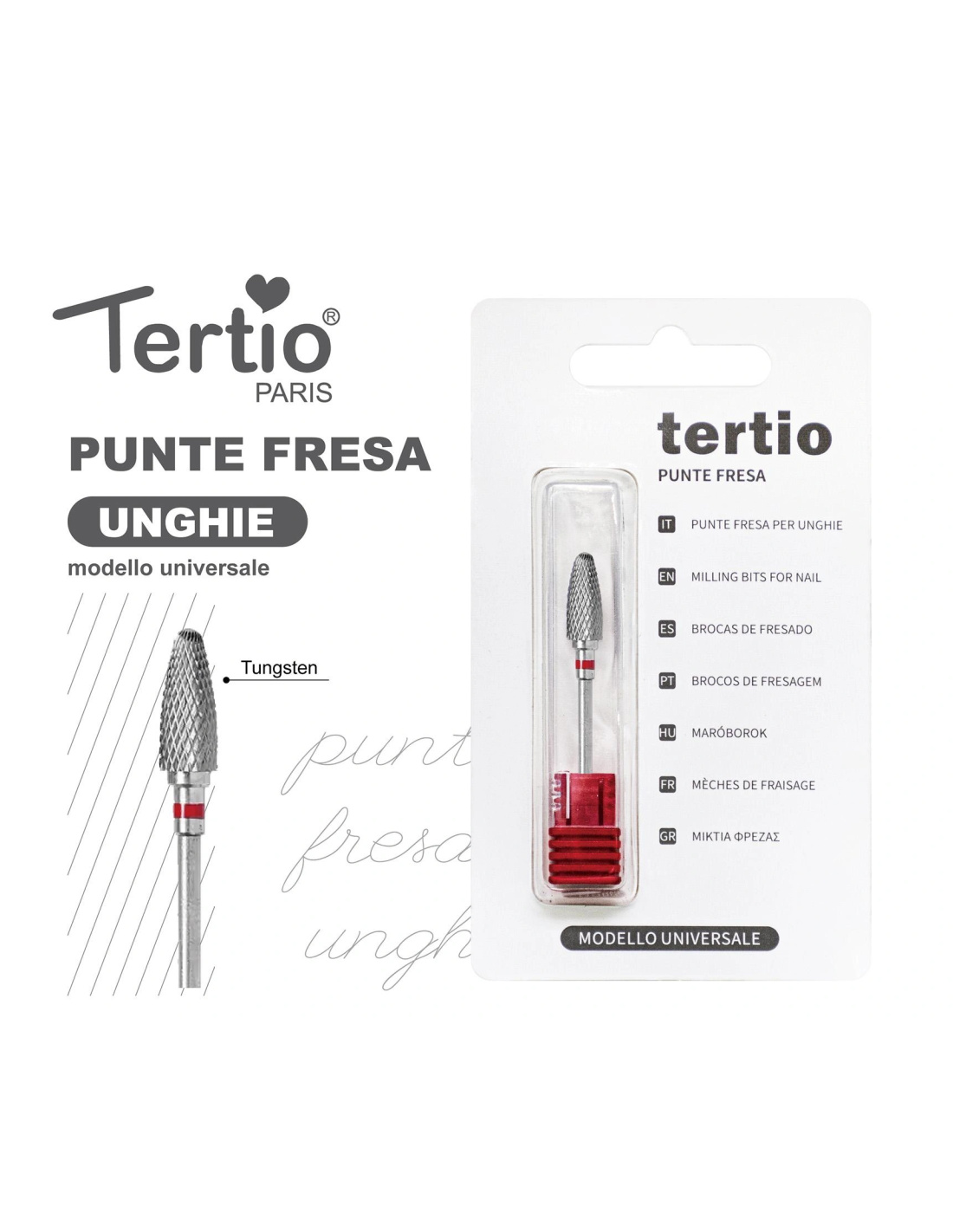 Tertio Punta Fresa Barril Roja de Tungsteno – Modelo Universal