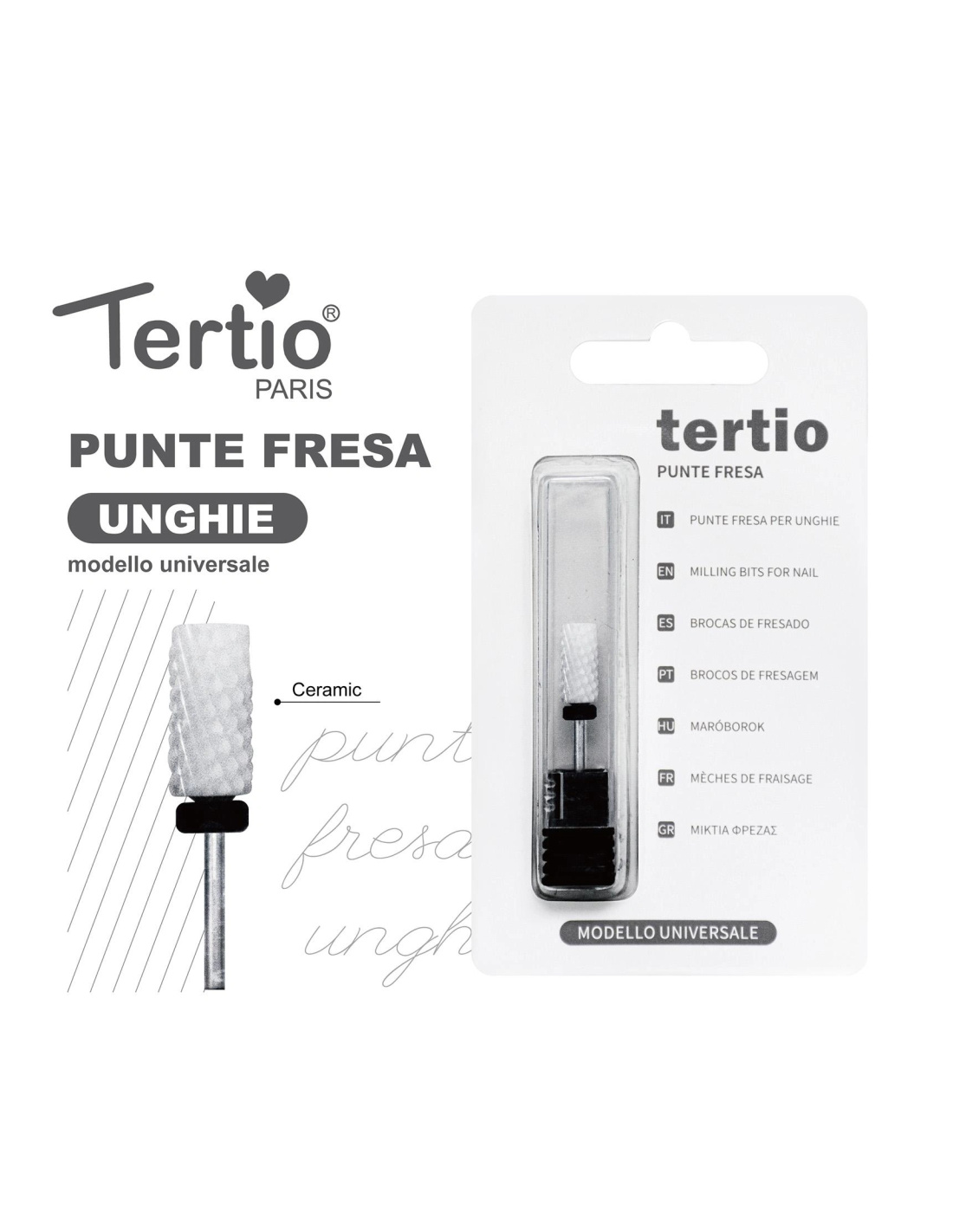 Compatible con fresas eléctricas universales de 2,35 mm, esta punta combina ligereza, durabilidad y precisión.El modelo universal de Tertio garantiza resultados profesionales, confort y larga vida útil, siendo una herramienta esencial en todo kit de uñas.